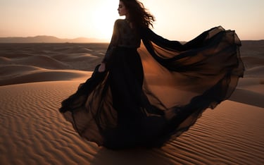 To exaggerate this persona, we portrayed her walking alone in the desert, dressed in strong and bold attire.